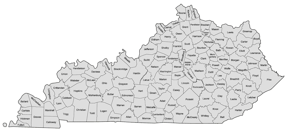 Please click on a county below to see injury data, publications and reports that have been generated by KIPRC Staff, as well as public health, economic and environmental data. You may also click here to select a county from an alphabetical list.